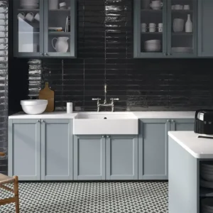 Os azulejos metro esmaltados são conhecidos pela sua durabilidade e resistência, sendo uma opção de baixo manutenção. A sua superfície lisa impede a acumulação de pó e gordura, o que facilita a sua conservação durante anos.