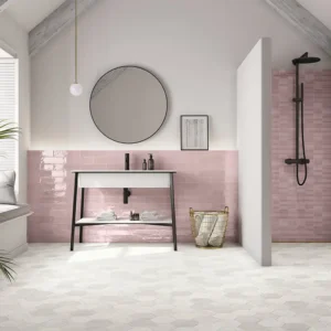 Em casas de banho pequenas, o azulejo metro branco ajuda a ampliar visualmente o espaço. Se quiseres experimentar um design mais ousado, o revestimento metro preto, cinzento-escuro ou azul-marinho, combinado com uma iluminação adequada, cria ambientes sofisticados e marcantes. Para um toque vintage, as cores vibrantes e os acabamentos mate com junta epóxi são as melhores opções.