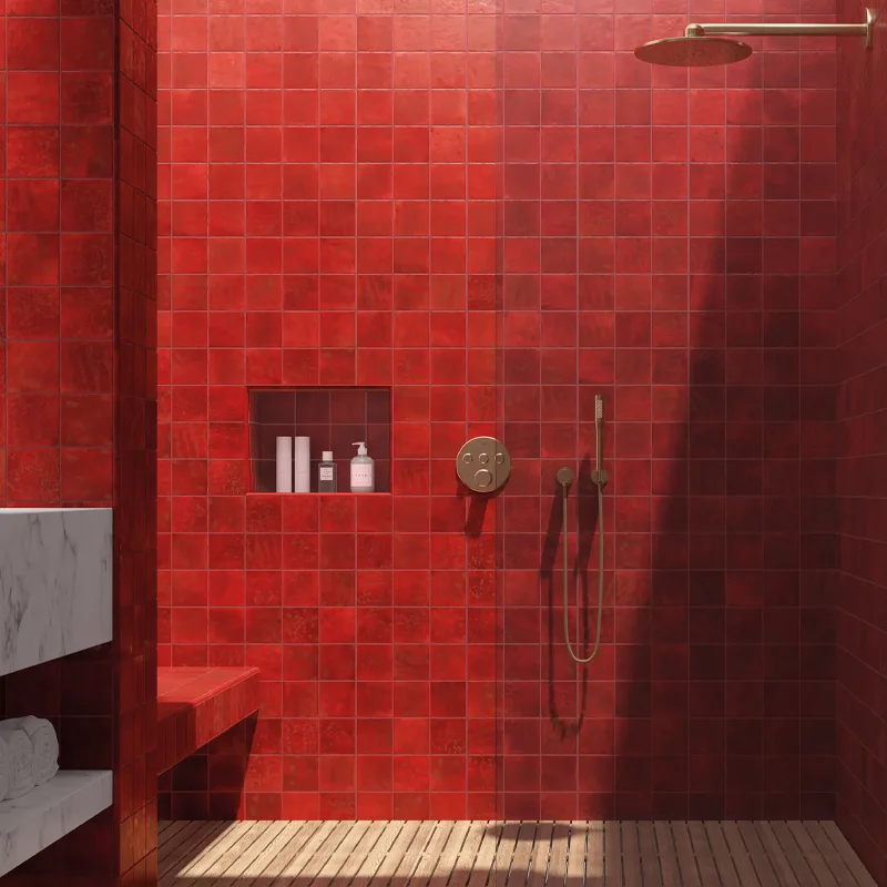 Os azulejos vermelhos são incrivelmente versáteis. Isso torna-os adequados para uma enorme variedade de estilos decorativos. Seja qual for o tipo de ambiente que desejas criar, o vermelho tem a grande capacidade de complementar qualquer conceito.