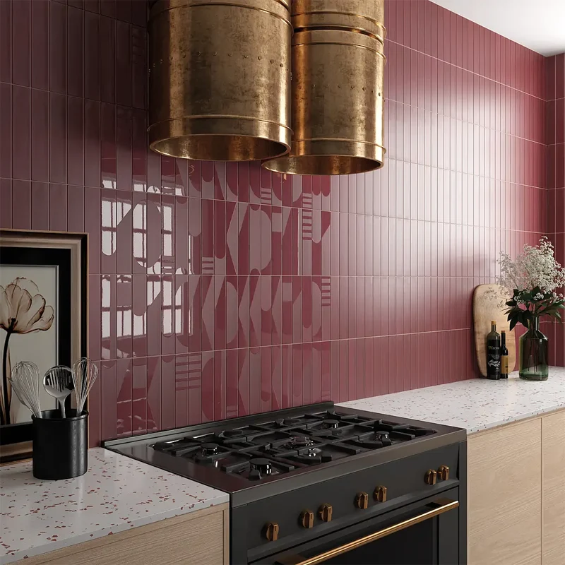 Em ambientes urbanos, os azulejos vermelhos com acabamentos mate ou texturizados integram-se perfeitamente em lofts e cozinhas abertas. O contraste com elementos industriais como o tijolo e o metal realça ainda mais a essência desta estética.